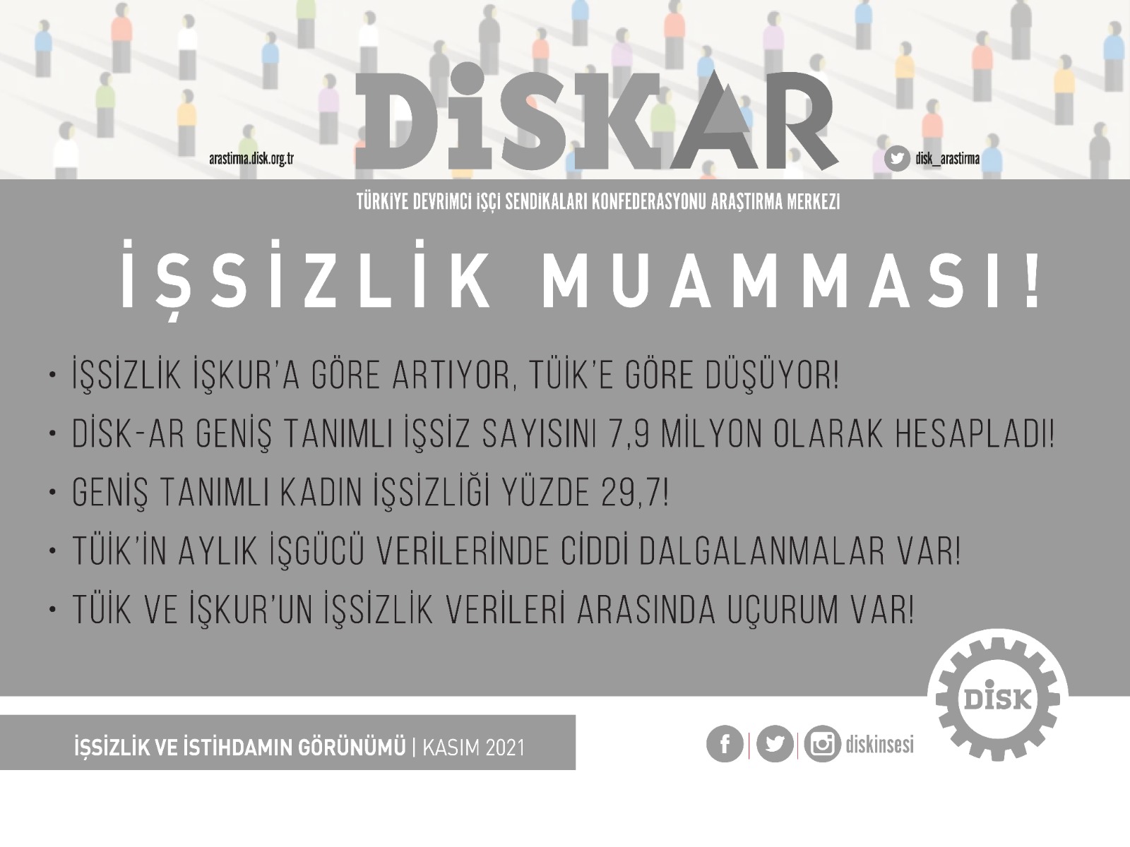 - DİSK-AR Geniş Tanımlı İşsiz Sayısını 7,9 Milyon Olarak Hesapladı!