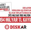 DİSK-AR Ücret Kayıpları İzleme Raporu (Nisan 2026) Yayımlandı! ENFLASYON İLE VERGİLERİN İŞÇİ ÜCRETLERİNE ÜÇ AYLIK TOPLAM FATURASI EN AZ 393 MİLYAR 900 MİLYON TL Yüksek enflasyon ile adaletsiz vergi ve kesintiler...