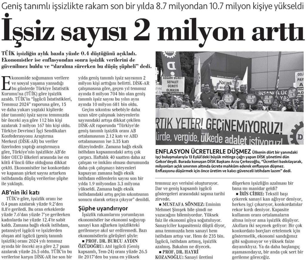 Aydınlık, 11 Eylül 2024.Cumhuriyet, 11 Eylül 2024.Evrensel, 11 Eylül 2024.Gazete Pencere, 11 Eylül 2024.Sözcü, 11 Eylül 2024.Yeni Mesaj, 11 Eylül 2024.Yeni Mesaj, 11 Eylül 2024.Yeniçağ, 11 Eylül 2024.Yeniçağ, 11 Eylül 2024.24 Saat, 11 Eylül 2024.24 Saat, 11 Eylül 2024.