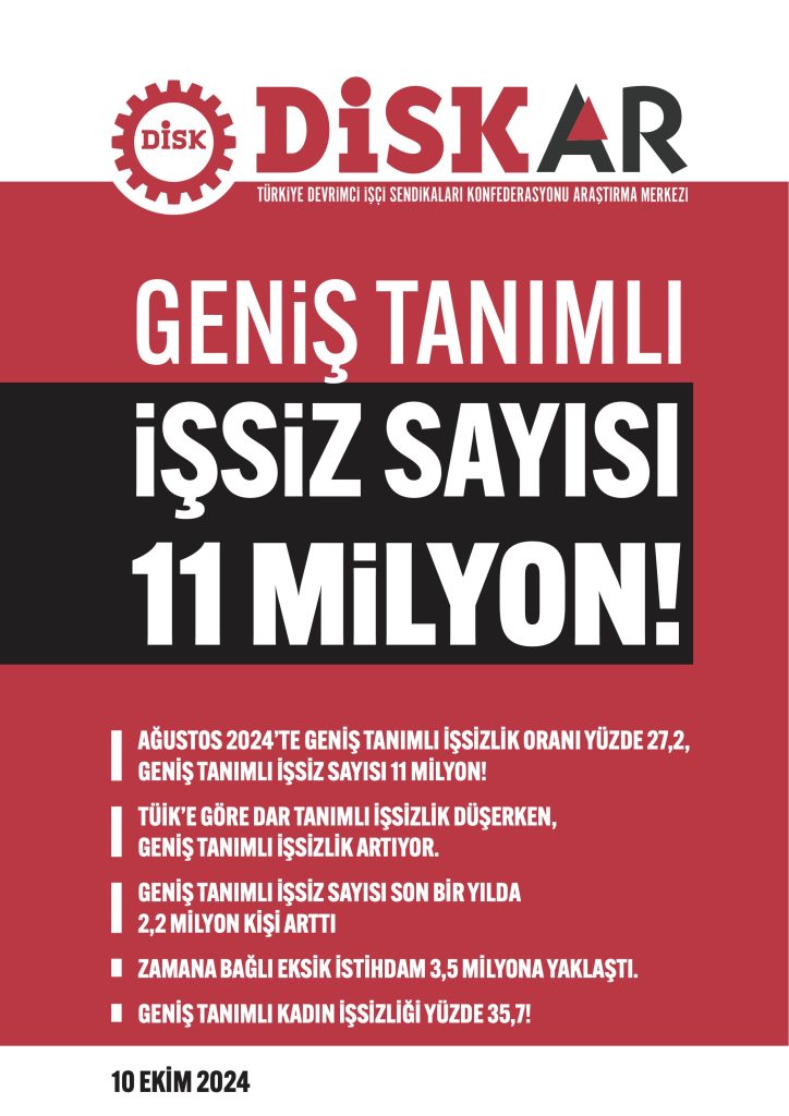 Ağustos 2024’te geniş tanımlı işsizlik oranı yüzde 27,2, geniş tanımlı işsiz sayısı 11 milyon!