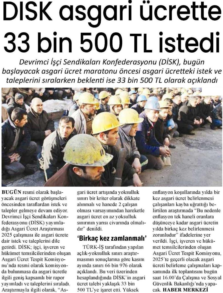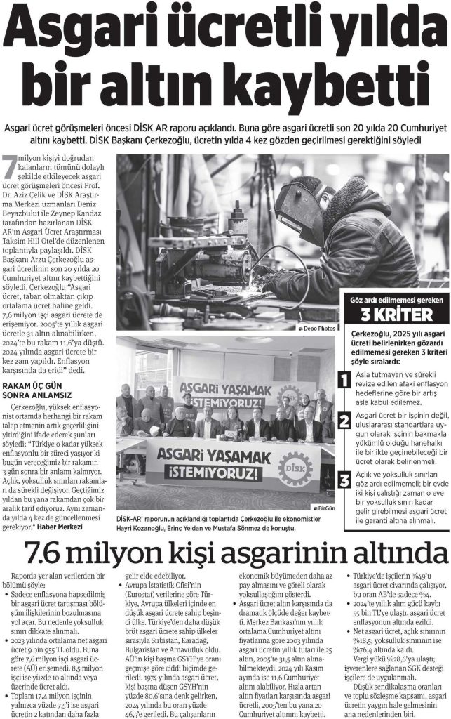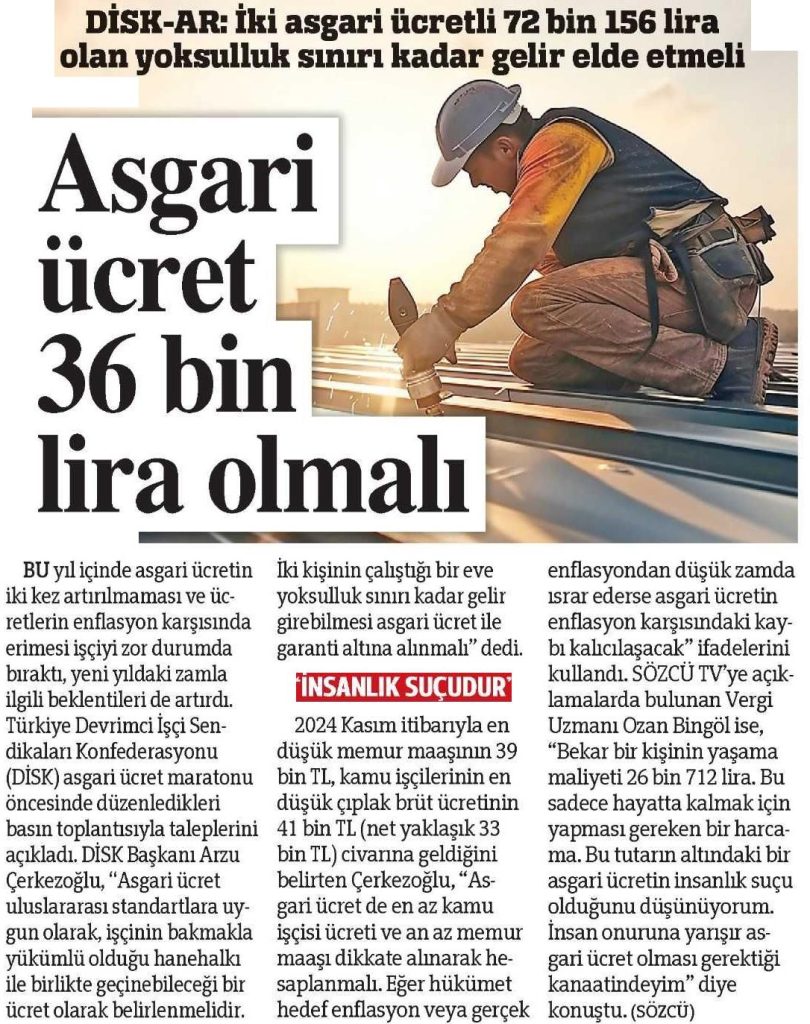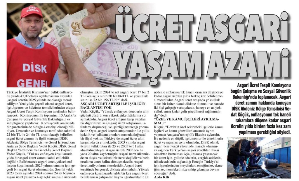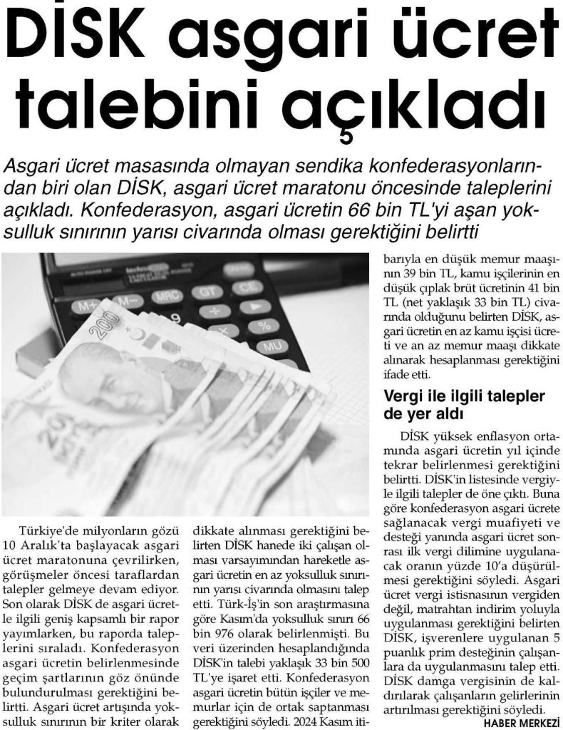 DİSK-AR tarafından hazırlanan ve 9 Aralık 2024’te yayımlanan “Asgari Ücret Araştırması (2025)” isimli araştırma 10 Aralık 2024’te yazılı basında geniş bir biçimde yer aldı.