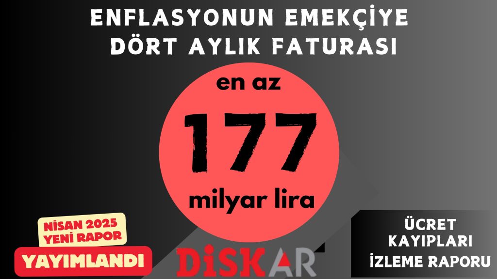 - 2025’in 4. ayında enflasyonun emek gelirlerinde (ücret, maaş ve aylık) yarattığı erime en az 176 milyar 600 milyon TL!