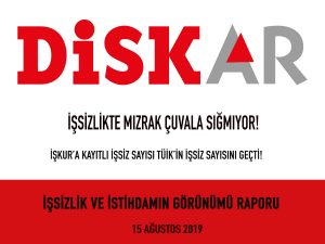 Türkiye Devrimci İşçi Sendikaları Konfederasyonu Araştırma Merkezi (DİSK-AR) Türkiye İstatistik Kurumu’nun (TÜİK) 15 Ağustos 2019 günü açıkladığı Mayıs 2019 dönemi Hanehalkı İşgücü Araştırması sonuçları ile İŞKUR Haziran 2019 verilerini değerlendirdi.
