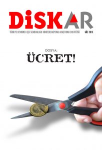 Üç ayda bir yayınlanacak olan DİSK-AR dergisinin ilk sayısının dosya konusu olarak “ücret” belirlenmiş durumda. Haziran Ayaklanması’nın sınıfsal analizi de Editör’den yazısı ile dergide yer alıyor. Dergiye Arif Halioğlu, “Dünyada Ve Türkiye’de Konjonktürel Durum: Depresyon, Sınıf Mücadelesi Ve Savaş”, Gencer Çakır, “Ücret Nedir? Nasıl Belirlenir?”, F. Serkan Öngel – Kurtar Tanyılmaz, “Türkiye Ekonomisinde Küresel Kriz Karşısında Sermayenin Tepkisi: İşçilerin Artan Sömürüsü!”, Yasemin Çelik, “Bölgesel Asgari Ücret Hangi “Yerelin” Talebidir Sorusuna Eleştirel Bir Yaklaşım”, M. Meryem Kurtulmuş, “Kapitalizm, Ataerki Ve Kadın-Erkek Ücret Eşitsizliği”, İrfan Kaygısız “2013 Ocak-Nisan Dönemi İşçi Sınıfı Eylemleri Üzerine Değerlendirme” yazıları ile katkı verirken, DİSK-AR’ın “AKP İşçinin Örgütlenme İradesine Kelepçe Vurdu!”, “Asgari Ücretle Geçim Mücadelesi” raporları da dergide yer alıyor. Vincent De Gaulejac’un kaleme aldığı “İşletme Hastalığına Tutulmuş Toplum” kitabının tanıtımına Mutlucan Şahan imzası ile ulaşmak mümkün. Ayrıca dergide “Alpaslan Işıklı Anısına” başlıklı bir yazı da bulunuyor.