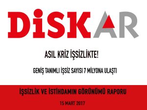 Türkiye Devrimci İşçi Sendikaları Konfederasyonu Araştırma Enstitüsü (DİSK-AR) Türkiye İstatistik Kurumu TÜİK’in 15 Mart 2017 günü açıkladığı Aralık 2016 dönemi Hanehalkı İşgücü Araştırması sonuçlarını değerlendirdi:
