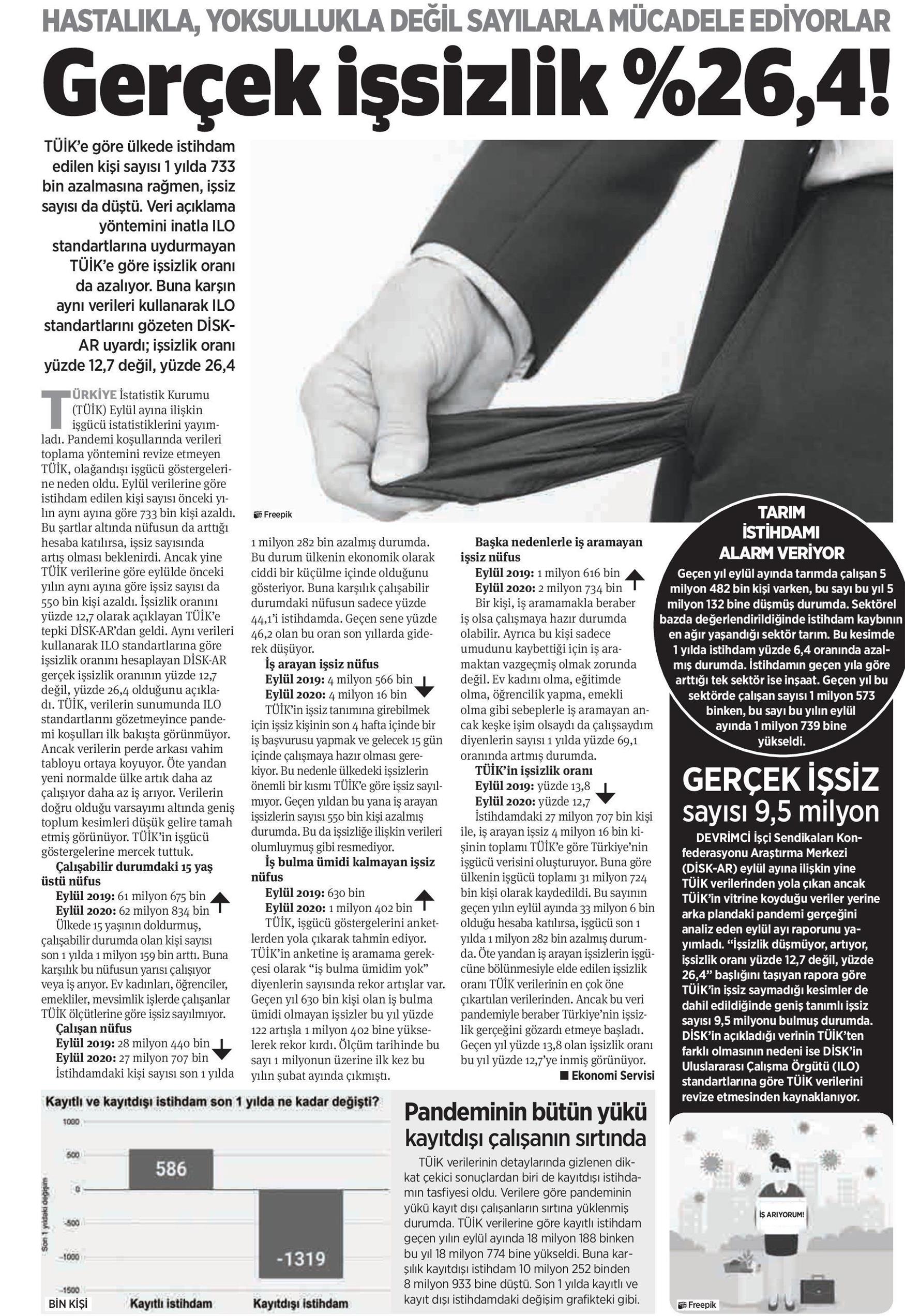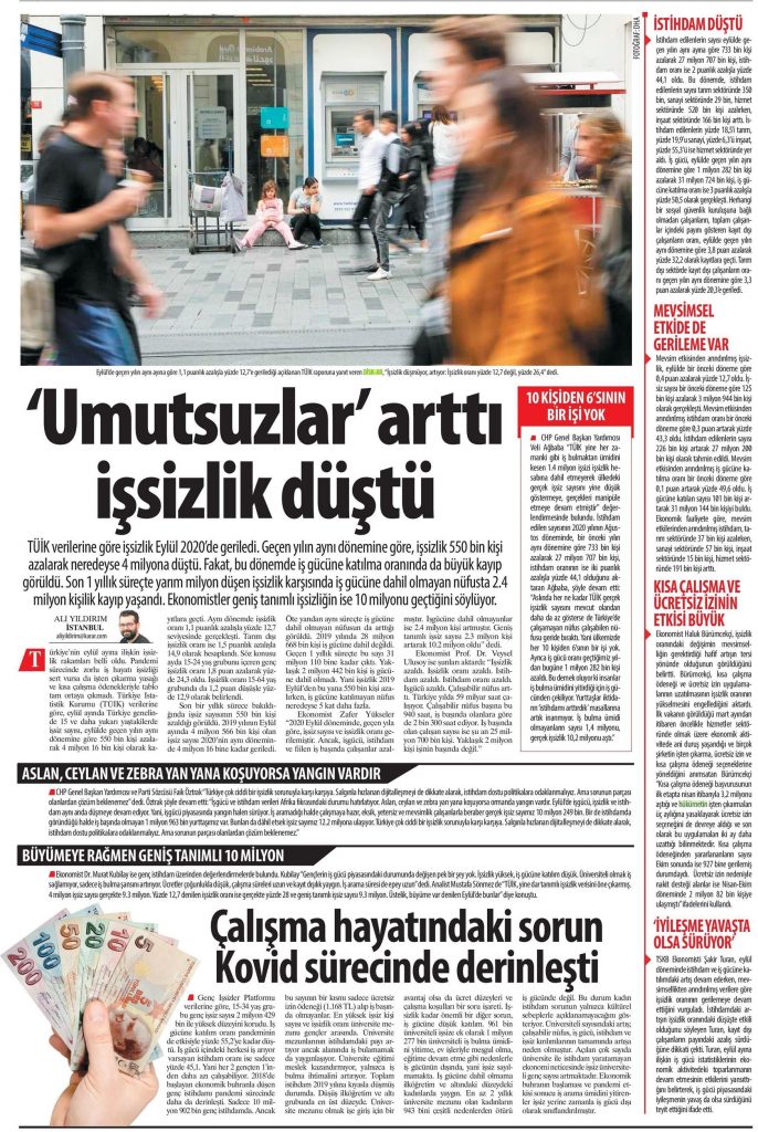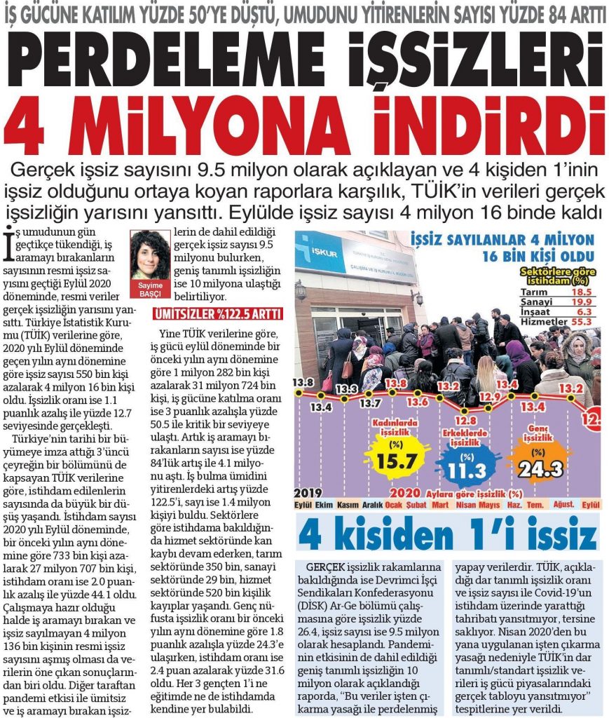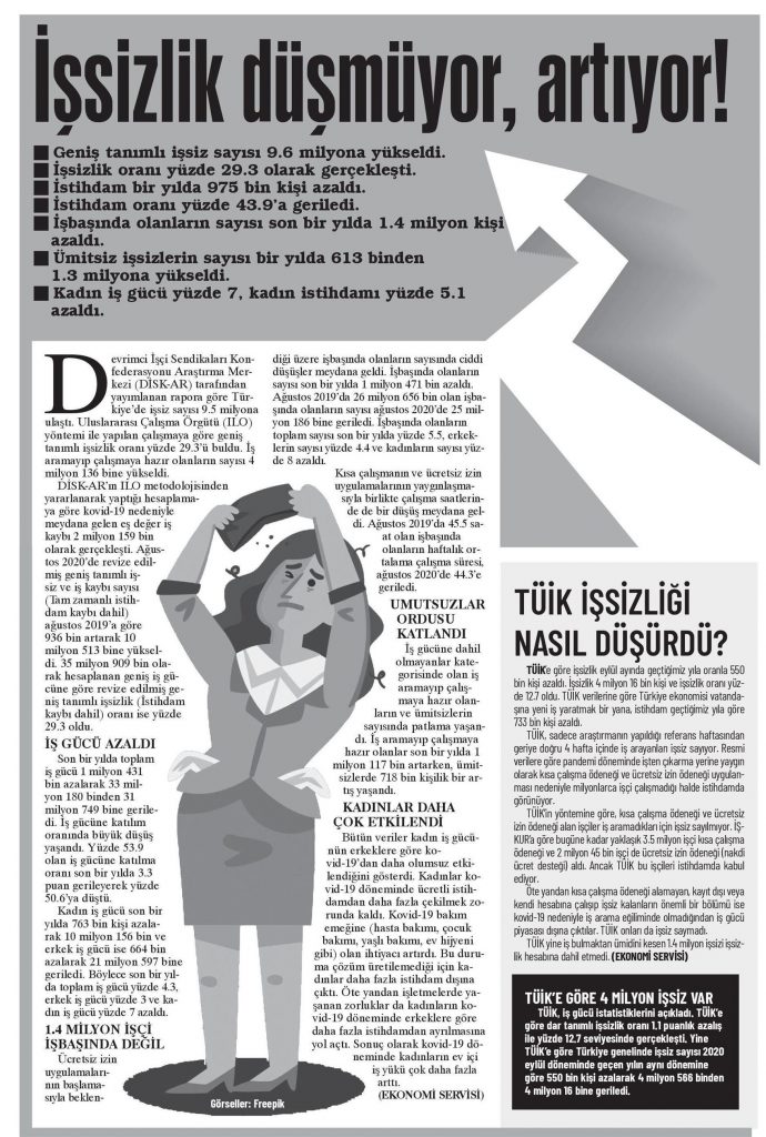 DİSK-AR tarafından hazırlanan ve 10 Aralık 2020 günü yayımlanan Eylül 2020 dönemine ait İşsizlik ve İstihdamın Görünümü Raporu’na 11 Aralık 2020 günü yazılı basında geniş bir yer verildi.