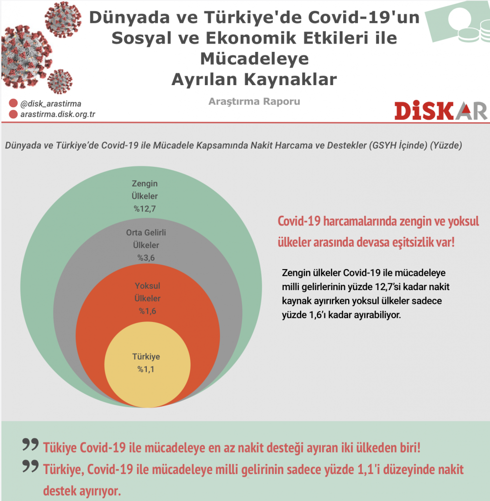 - Türkiye, Covid-19 ile mücadeleye (sağlık harcamaları dahil) milli gelirinin sadece yüzde 1,1’i düzeyinde nakit desteği ayırıyor!