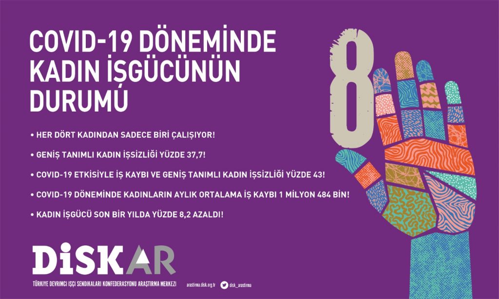 Tüm dünyada işçilerin işi, geliri ve sağlığı üzerinde büyük tahribat yaratan Covid-19 salgını Türkiye işgücü piyasalarında ciddi sonuçlara yol açmaya devam ediyor. Covid-19 salgını ile birlikte kadınların işgücü piyasalarında yaşadığı eşitsizlikler daha derinleşiyor.