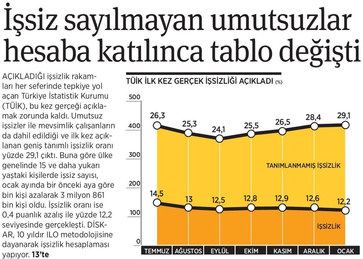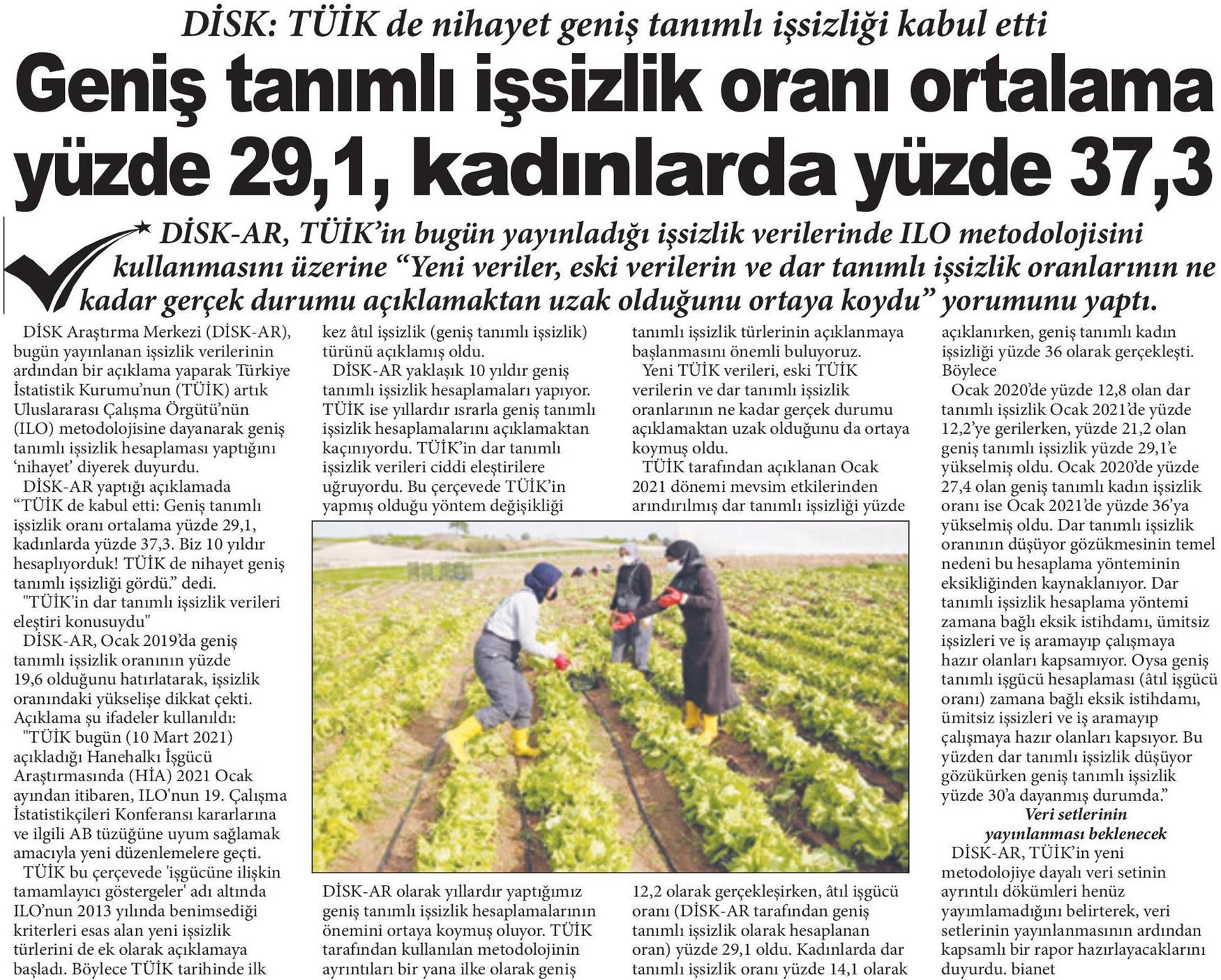 DİSK-AR tarafından hazırlanan ve 10 Mart 2021 tarihinde yayımlanan “TÜİK’in Hanehalkı İşgücü İstatistikleri Araştırmasında Yapılan Değişiklik Hakkında” adlı bülten 11 Mart 2021 tarihli yazılı basında geniş yer verildi.
