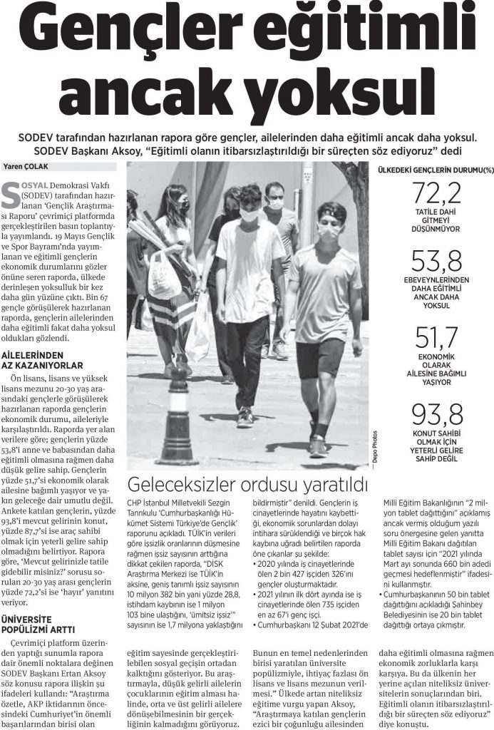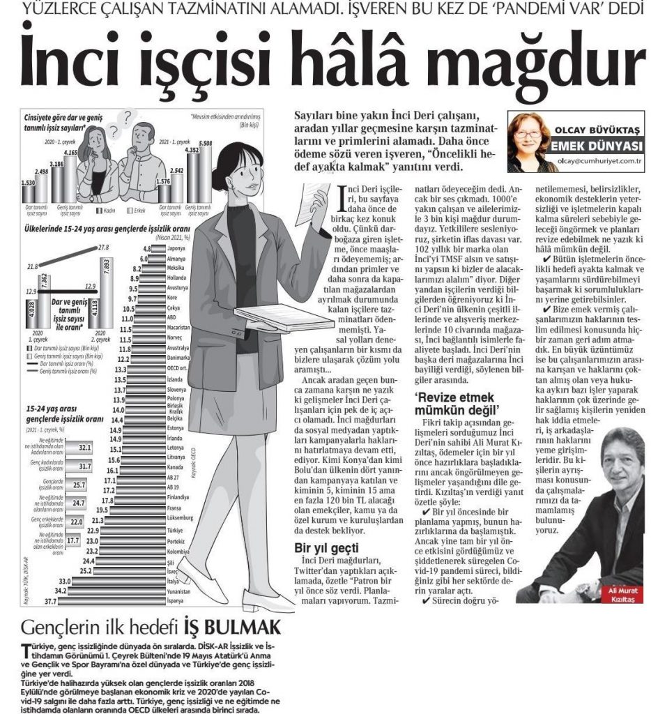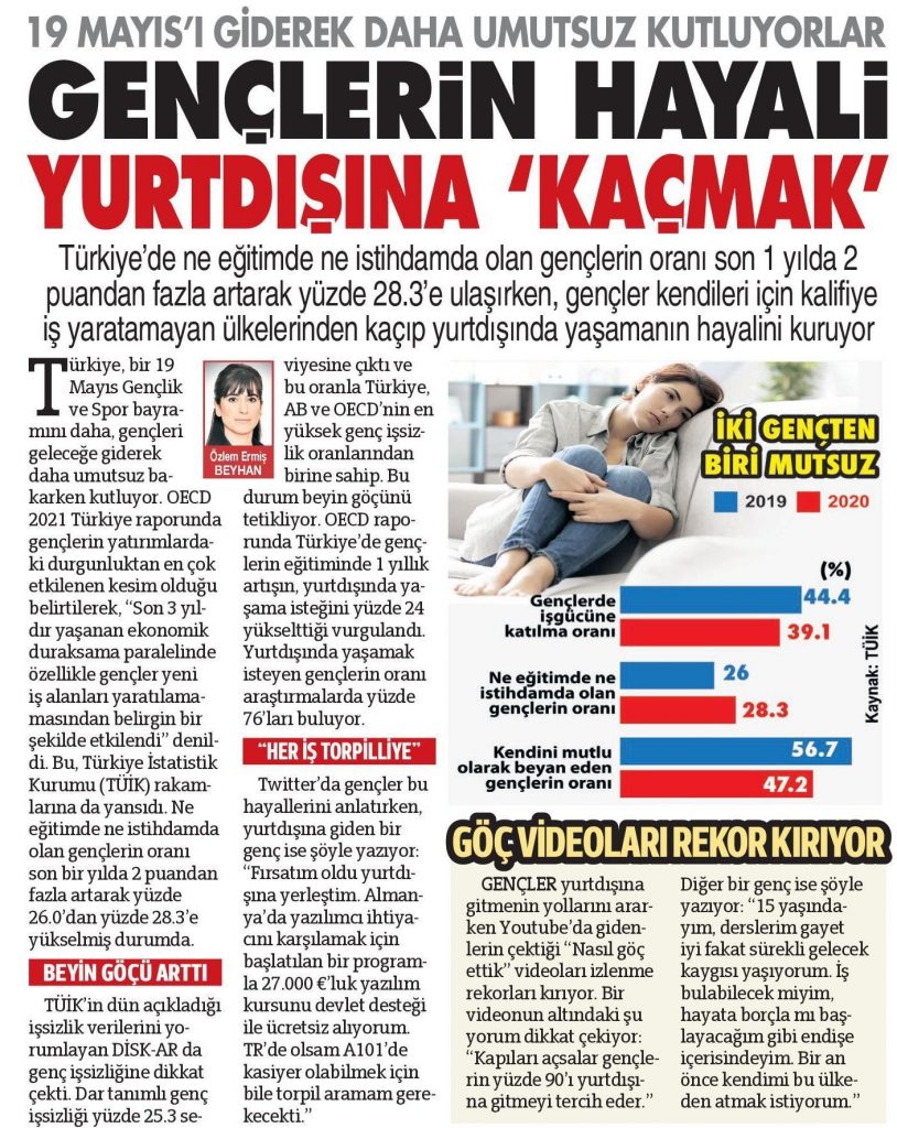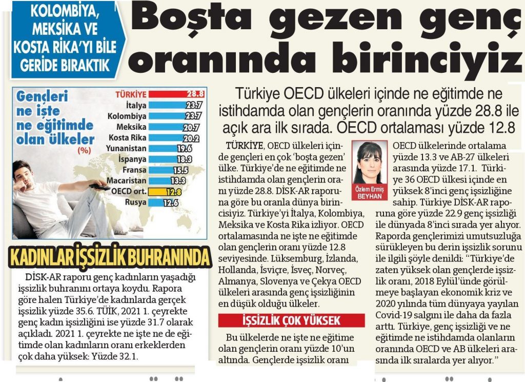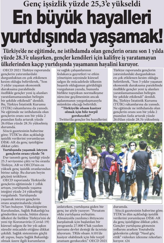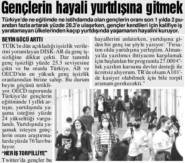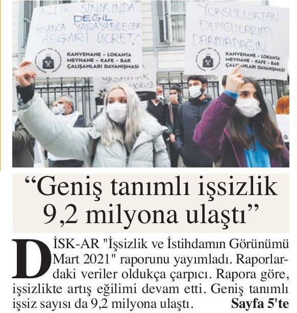DİSK-AR tarafından hazırlanan “19 Mayıs’ta gençler ne eğitimde ne istihdamda“, “İŞKUR Covid-19 döneminde de işverenlere çalıştı” ve “İşsizlik ve İstihdamın Görünümü-Mart 2021” araştırmaları 12 Mayıs 2021, 17 Mayıs 2021, 19 Mayıs 2021 ve 20 Mayıs 2021 tarihli yazılı basında yer aldı.