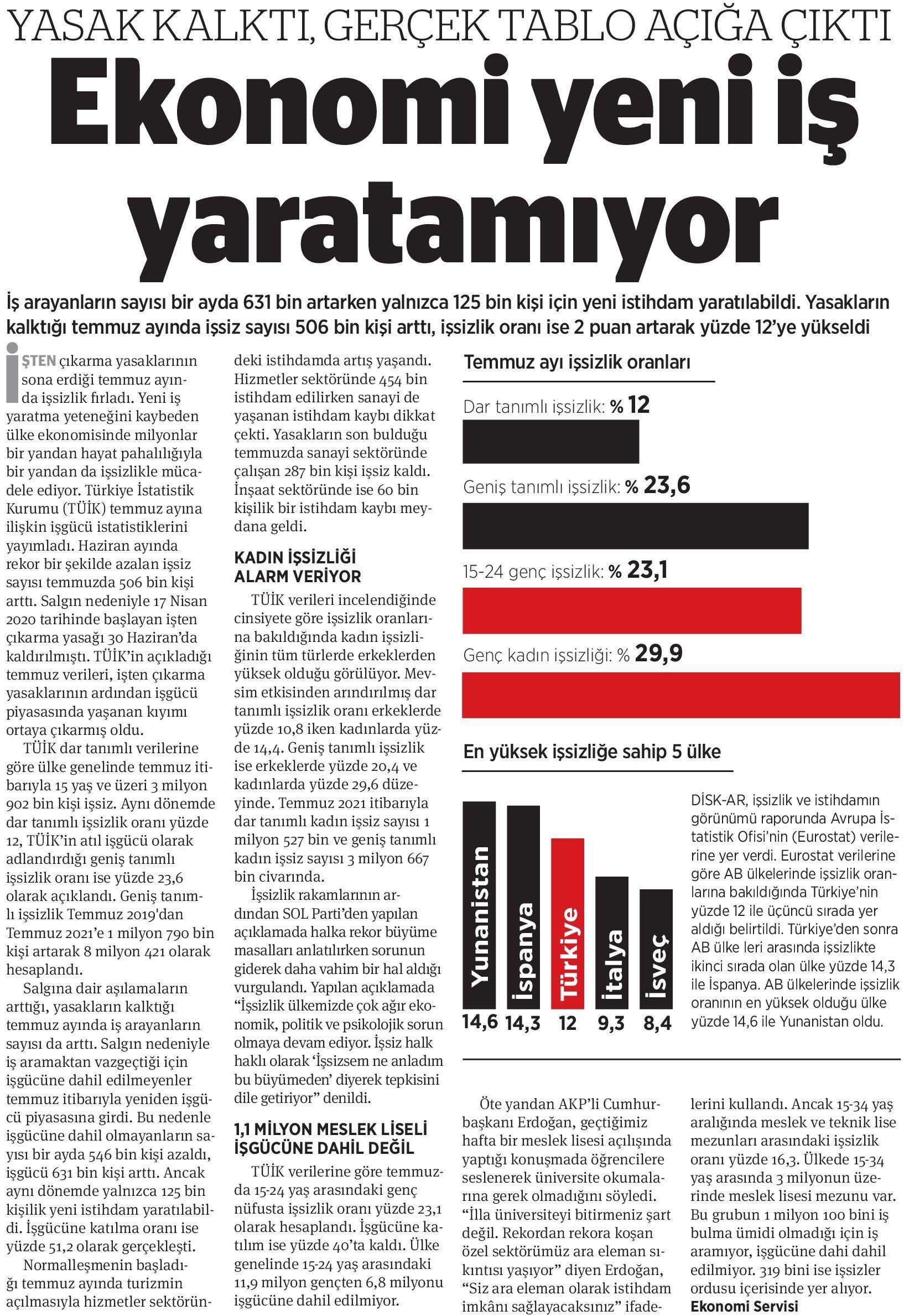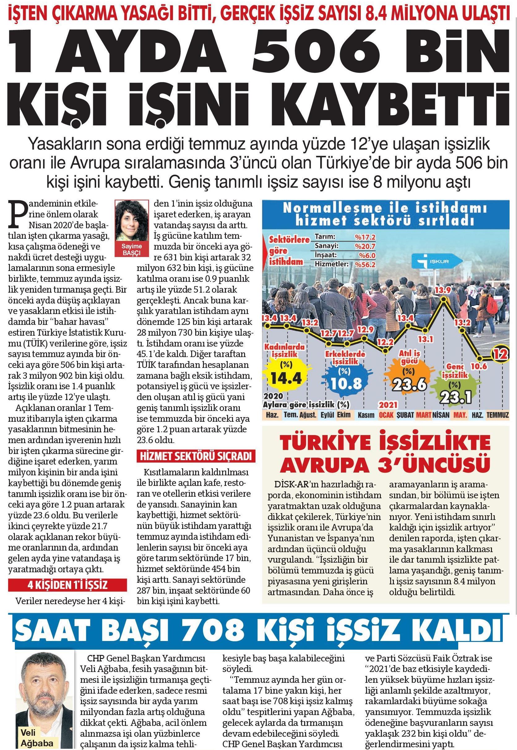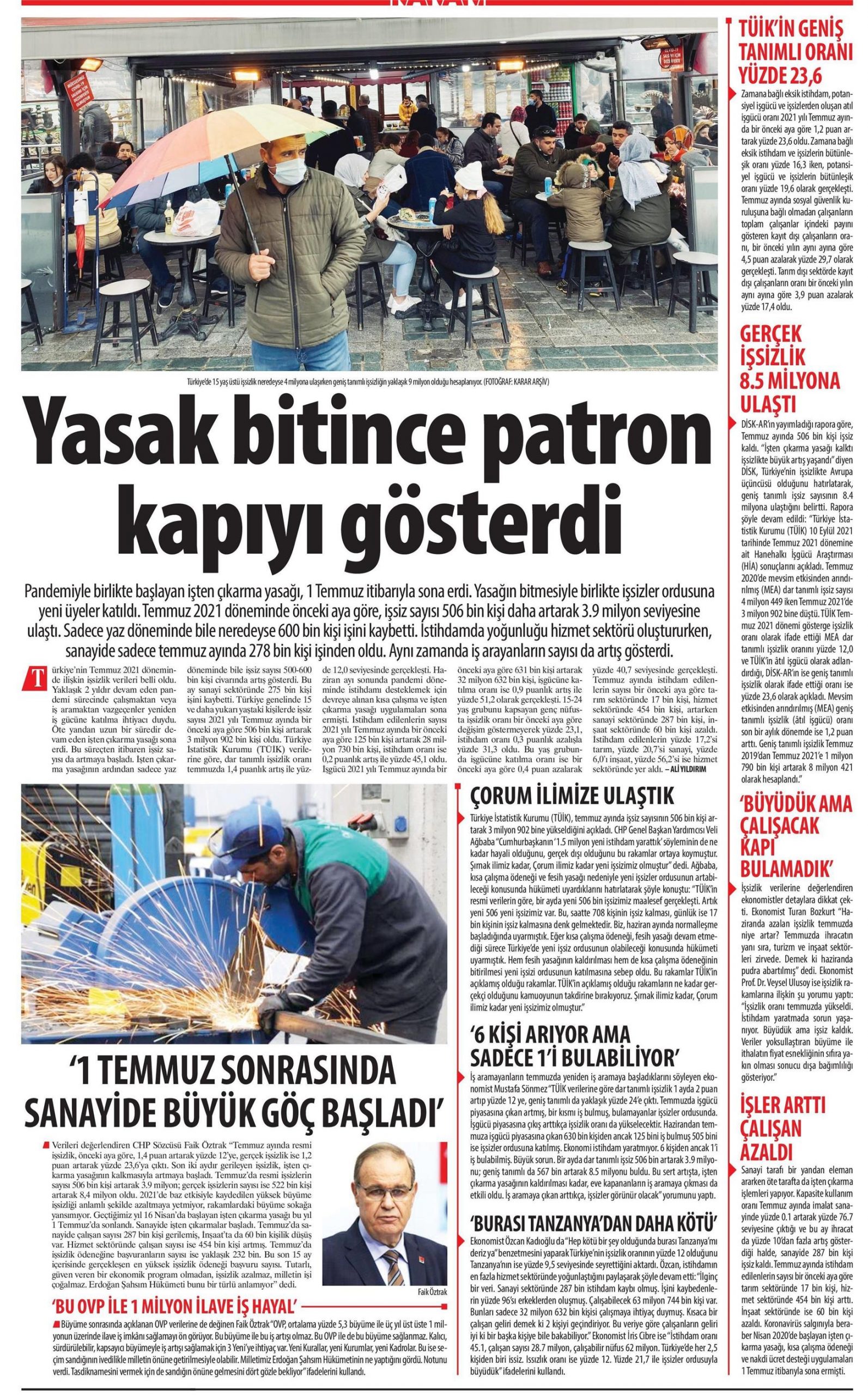 DİSK-AR tarafından hazırlanan ve 10 Eylül 2021’de yayımlanan İşsizlik ve İstihdamın Görünümü Araştırma Bülteni (Eylül 2021) 11 Eylül 2021 tarihli yazılı basında yer verildi.
