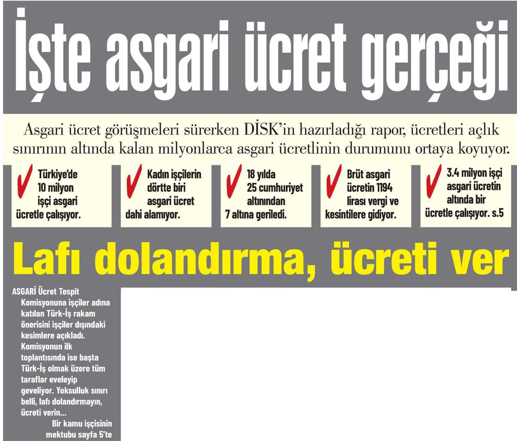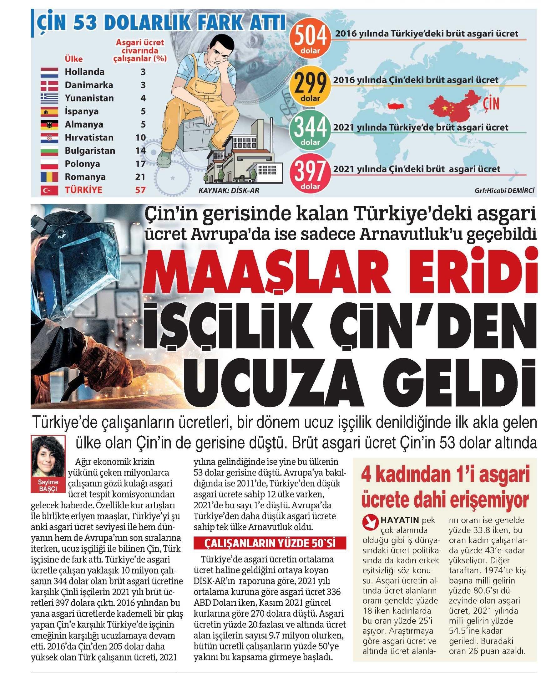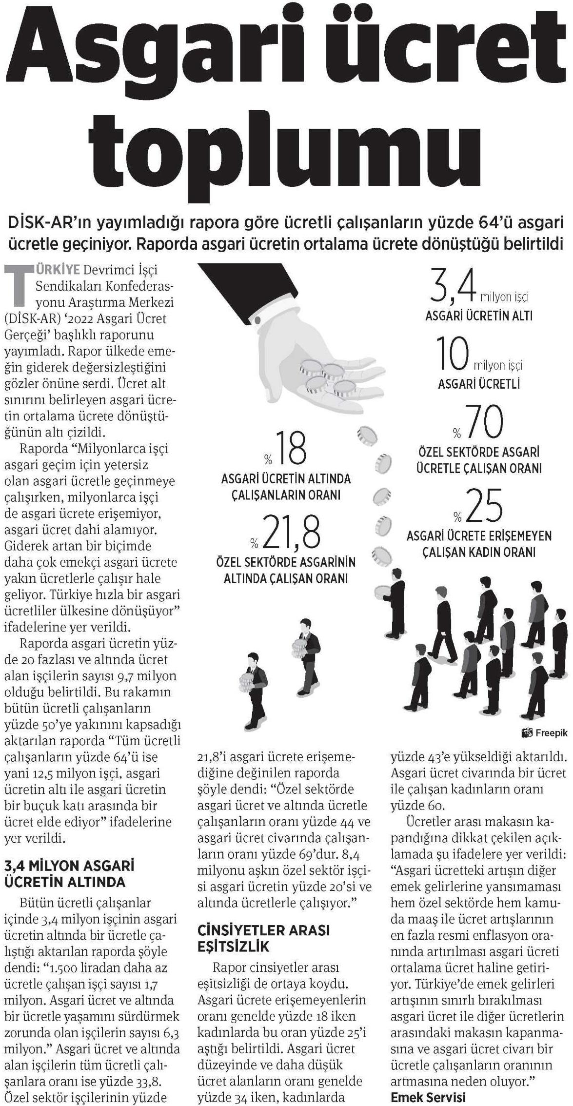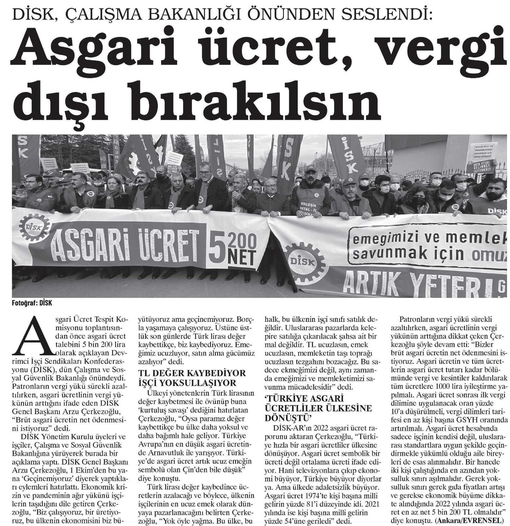 DİSK-AR tarafından 2 Aralık 2021 günü yayımlanan “Asgari Ücret Gerçeği-2021” araştırması 3 ve 4 Aralık 2021 tarihli yazılı basında geniş yer buldu.