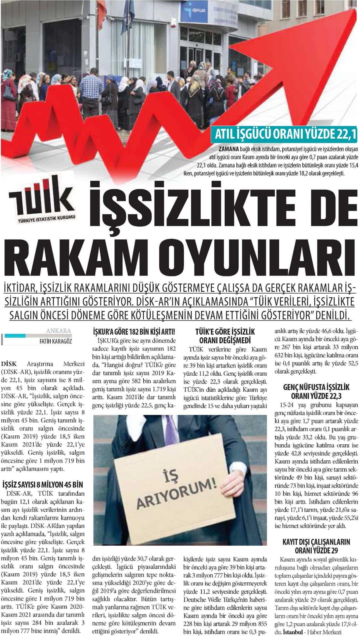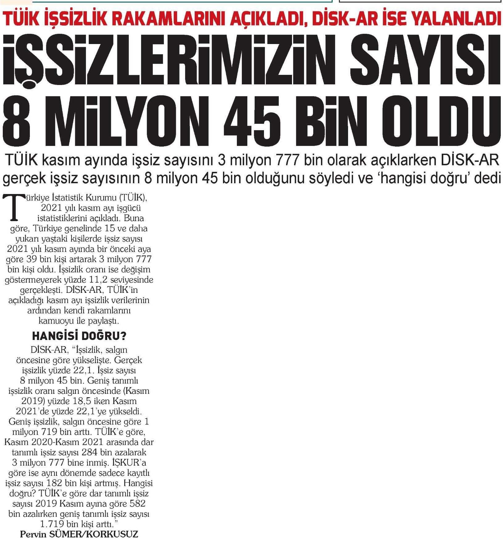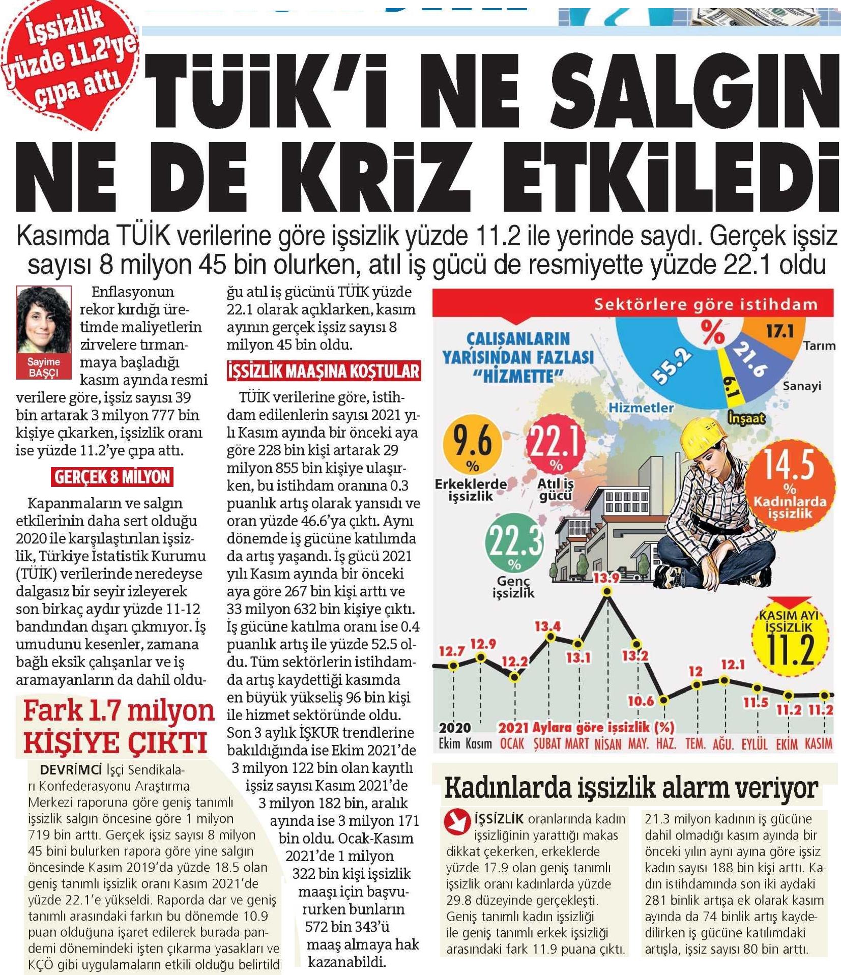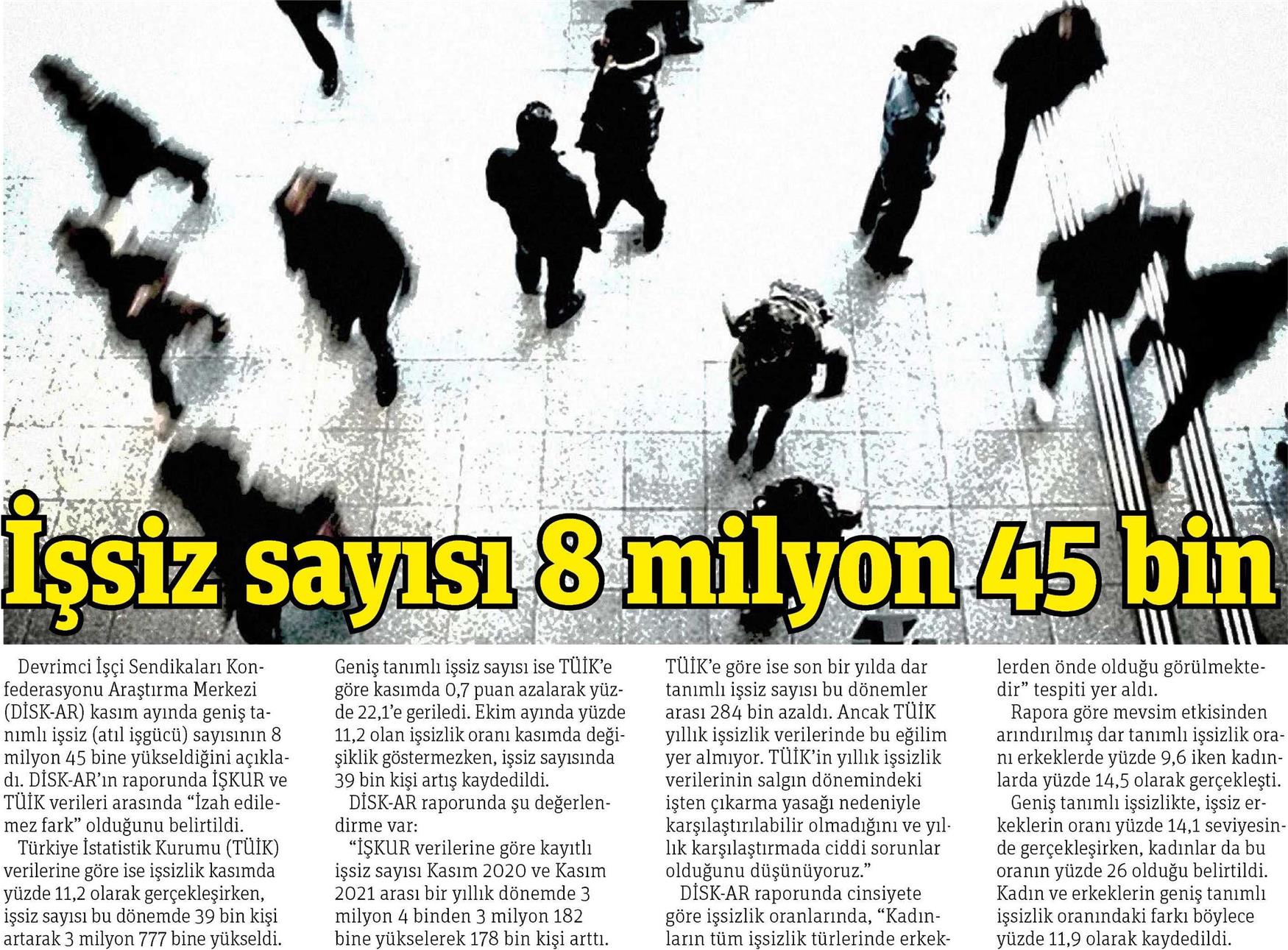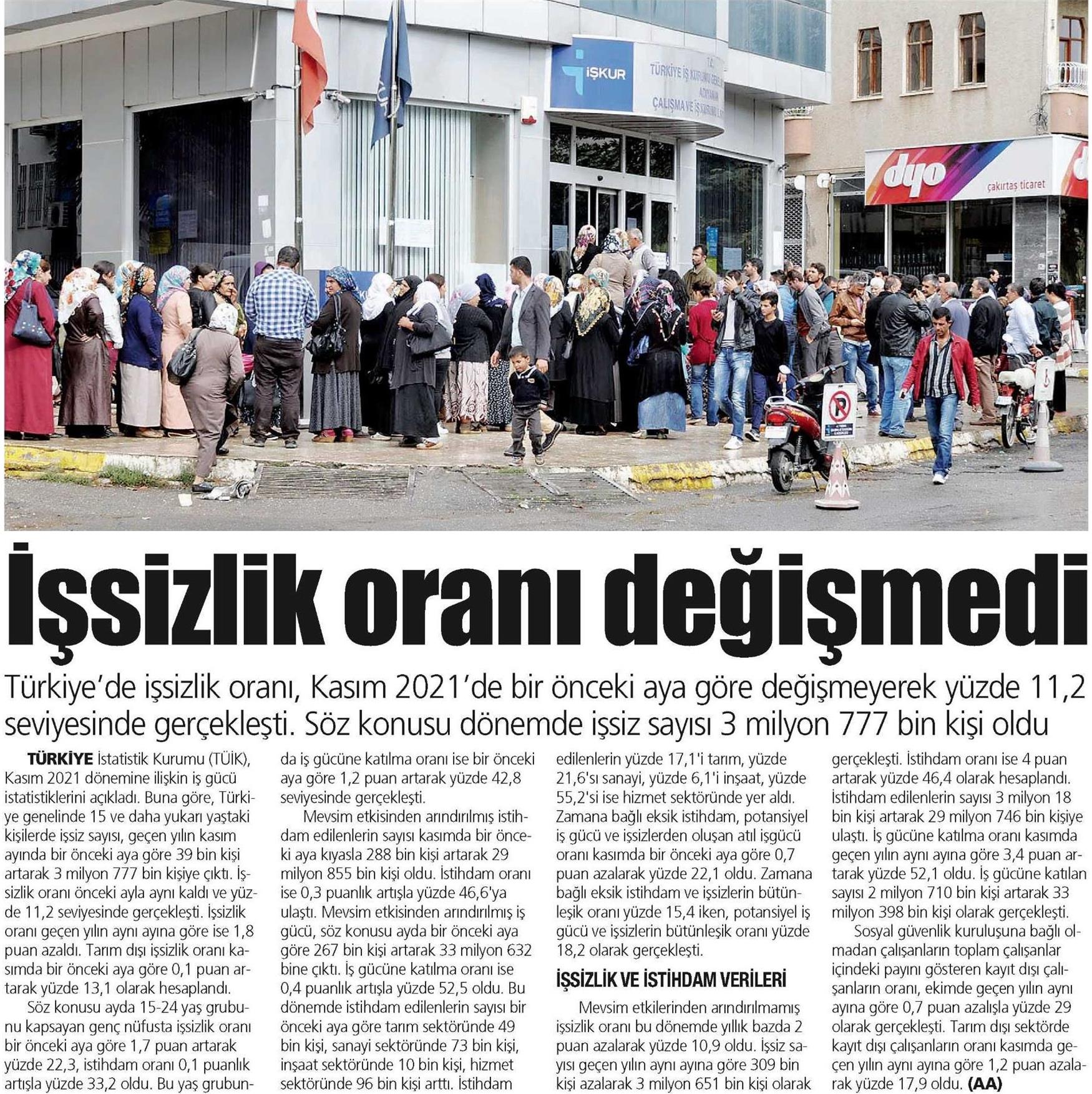 DİSK-AR tarafından 10 Ocak 2022 günü hazırlanan “İşsizlik ve İstihdamın Görünümü Raporu (Ocak 2022)“, 11 Ocak 2022 tarihli yazılı basında geniş yer buldu.