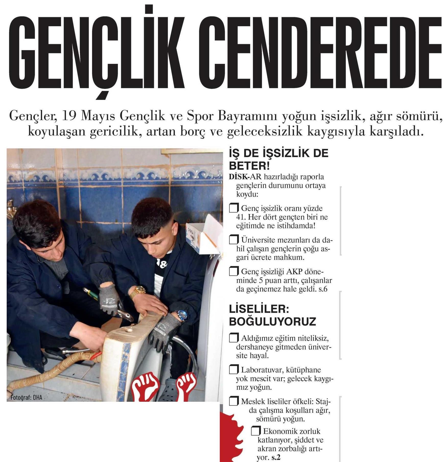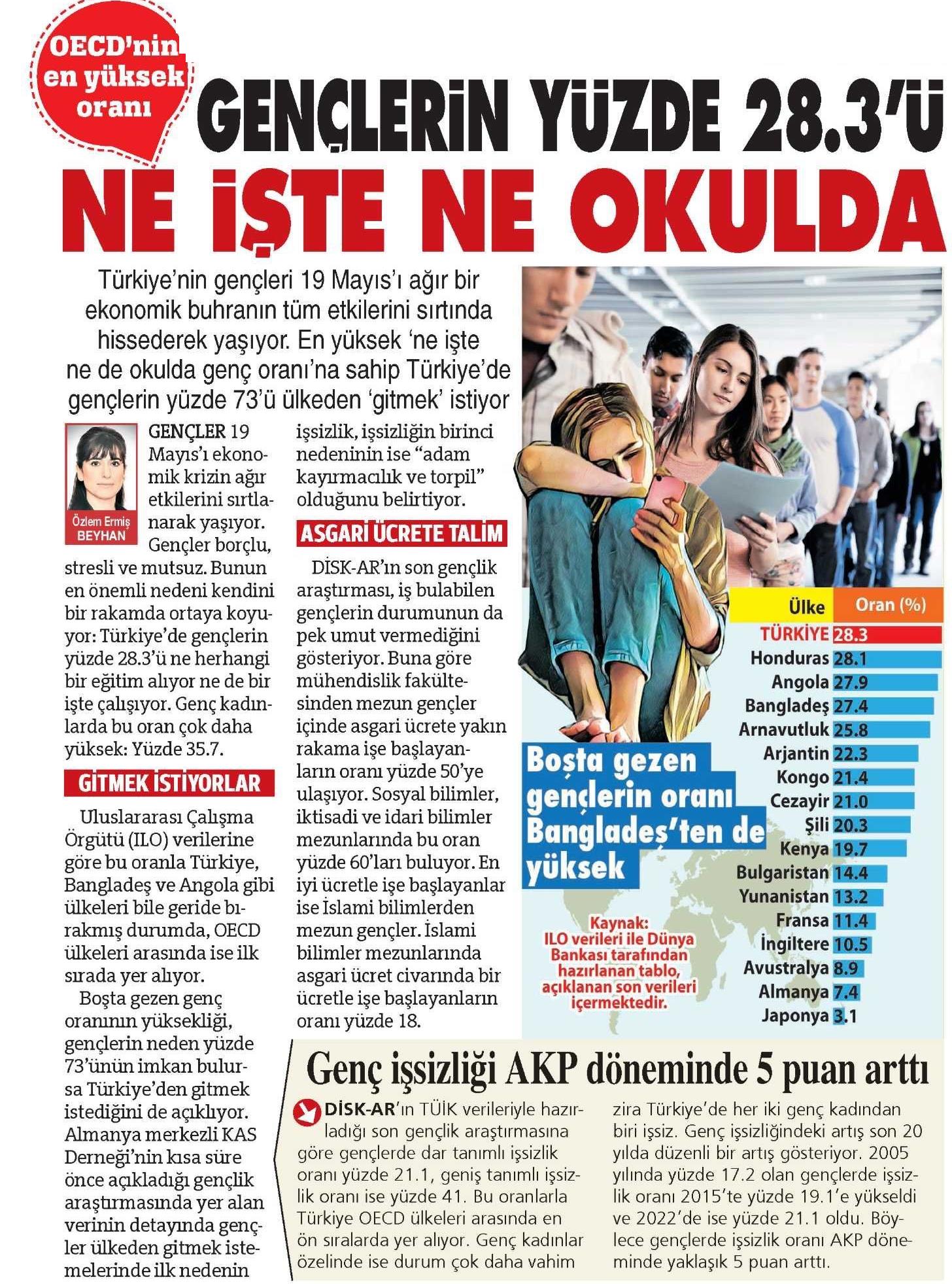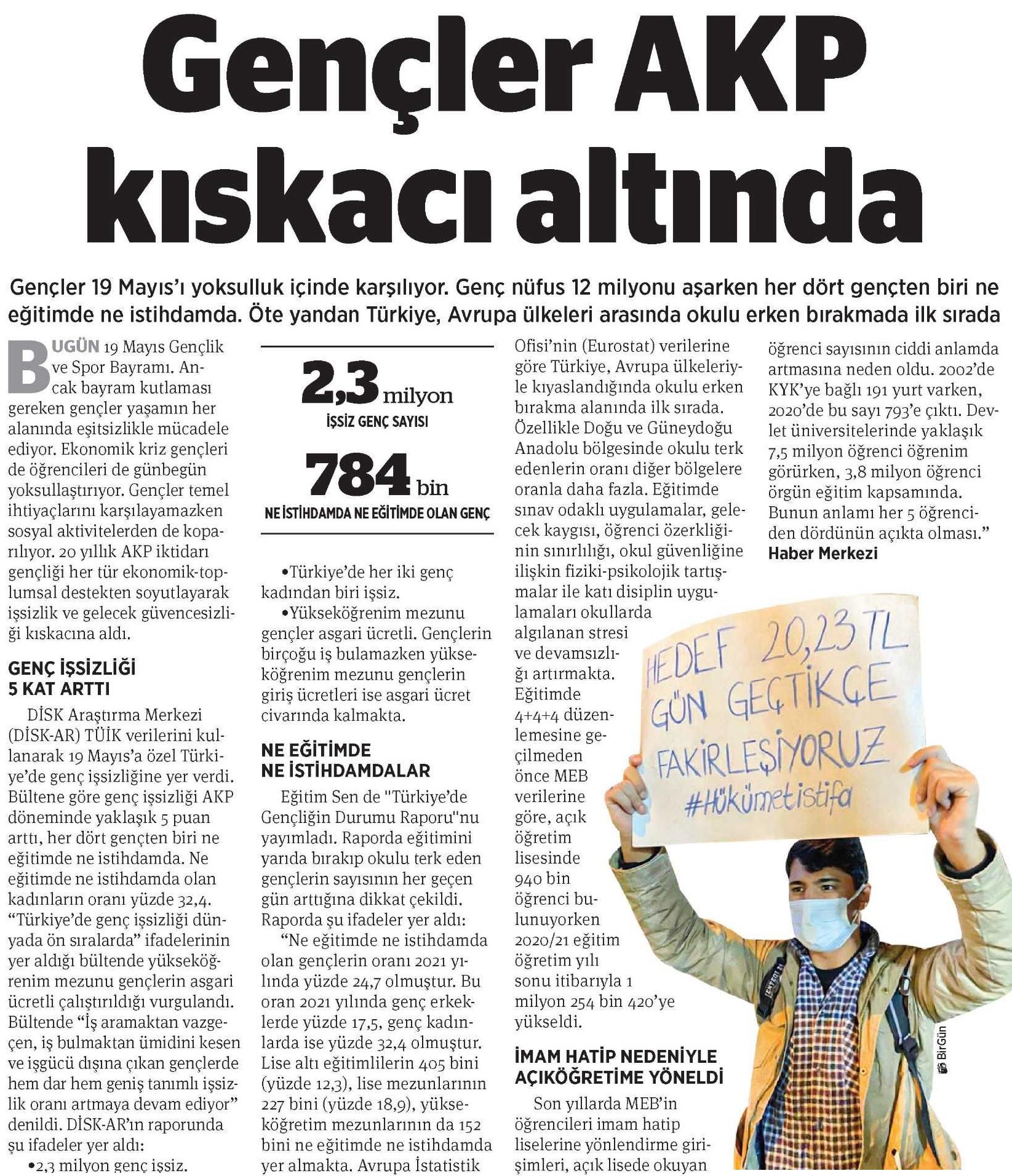 DİSK-AR tarafından hazırlanan ve 18 Mayıs 2022 günü yayımlanan “19 Mayıs’ta Gençler Ya İşsiz Ya Asgari Ücretli” adlı araştırma bülteni 19 Mayıs 2022 tarihli yazılı basında yer buldu.