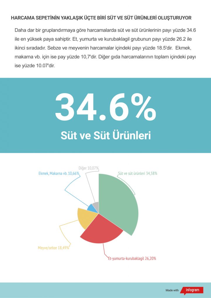 - Günlük harcamalarda en yüksek maliyet grubu 79.03 TL ile süt ve süt ürünleri grubu oluşturuyor!