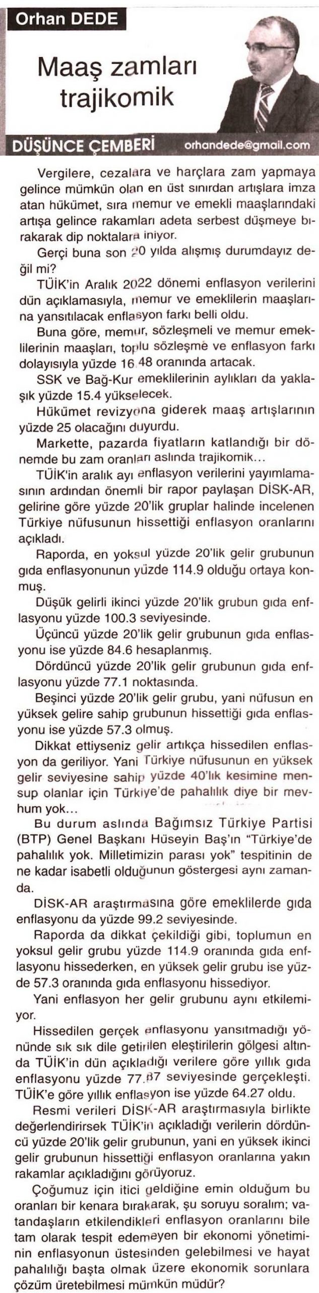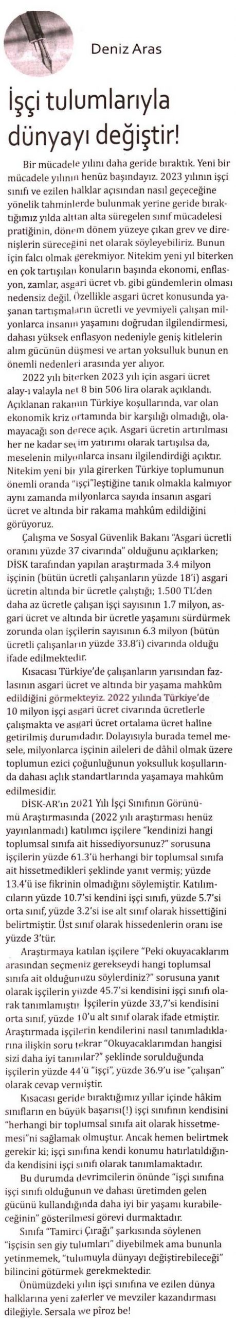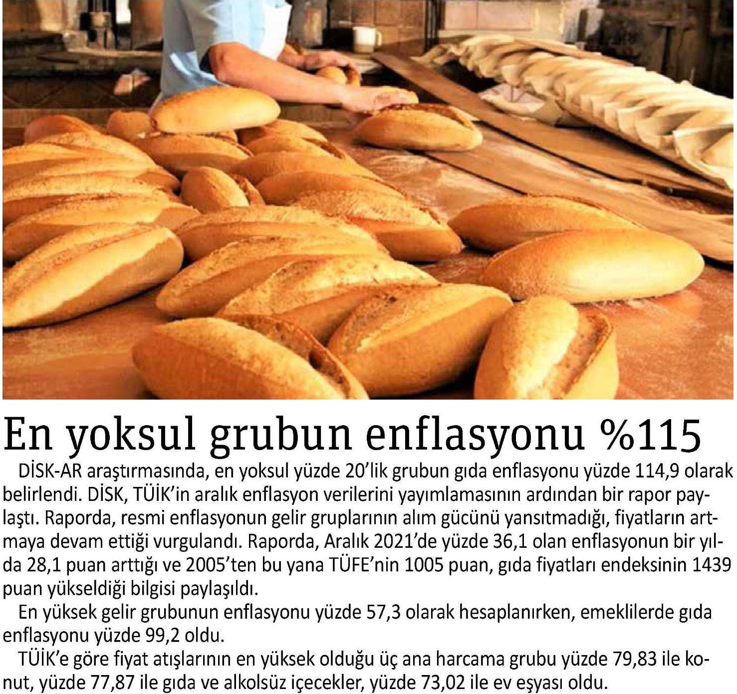 DİSK-AR tarafından hazırlanan ve 3 Ocak 2023 günü yayımlanan “Fiyatlar Artmaya Devam Ediyor” adlı haber bülteni 4 Ocak 2023 tarihli yazılı basında yer buldu.