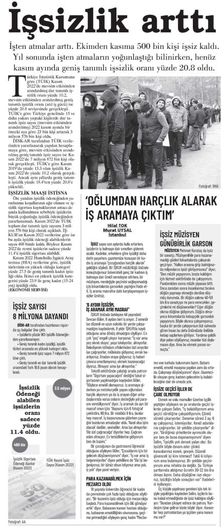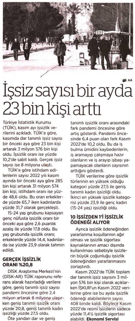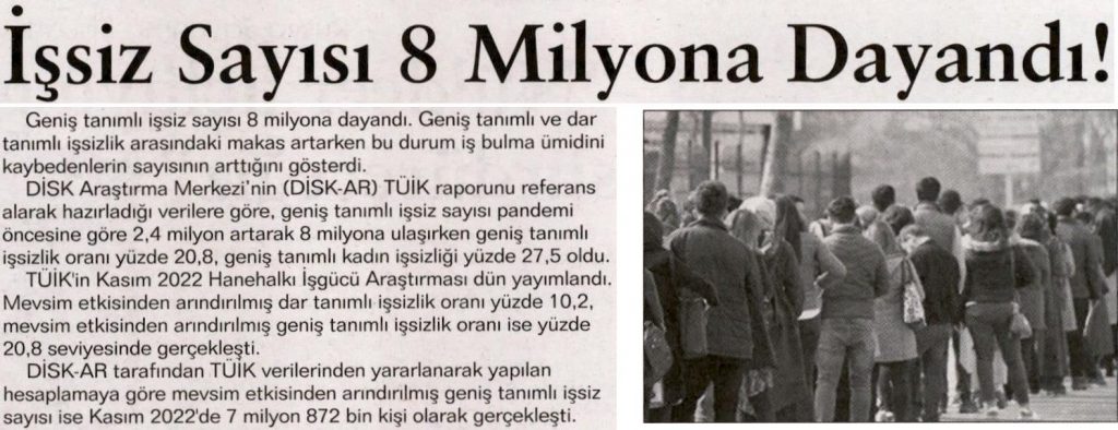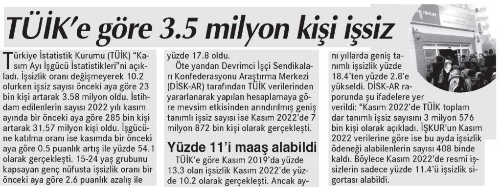 BirGün, 11 Ocak 2023.BirGün, 11 Ocak 2023.Cumhuriyet, 11 Ocak 2023.Evrensel, 11 Ocak 2023.Evrensel, 11 Ocak 2023.Gazete Pencere, 11 Ocak 2023.Adapazarı Akşam, 11 Ocak 2023.İkinci Yüzyıl, 11 Ocak 2023.İkinci Yüzyıl, 11 Ocak 2023.Vatan Gazetesi (Kıbrıs), 11 Ocak 2023.